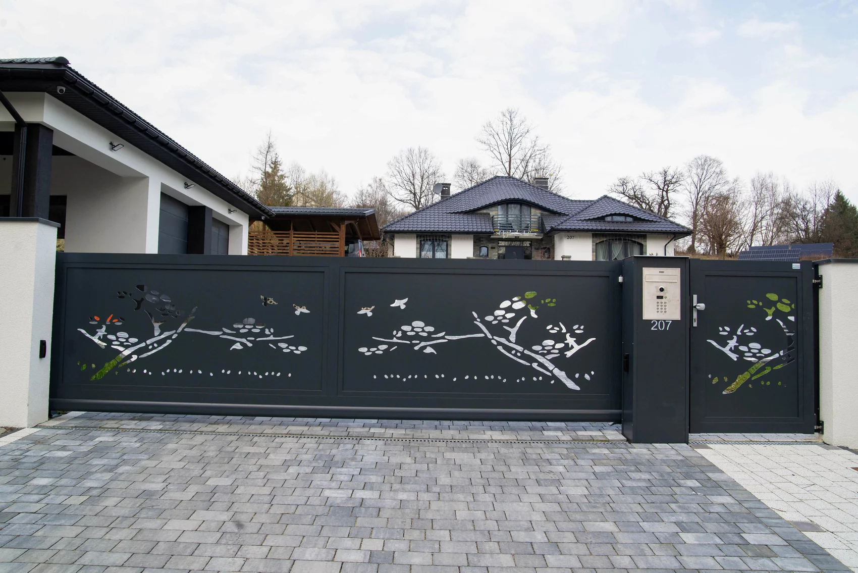 Aluminiowa brama przesuwna to nowoczesne rozwiązanie, które łączy funkcjonalność z elegancją. Wykonana w całości z aluminium, brama jest lekka, trwała i odporna na korozję. W celu ułatwienia komfortu użytkowania brama może być zautomatyzowana siłownikami renomowanych producentów Sommer oraz Tousek. Jeśli potrzebujesz dokładnych wymiarów lub innych szczegółów, warto skonsultować się z naszym doradcą, który udzieli niezbędnych informacji.