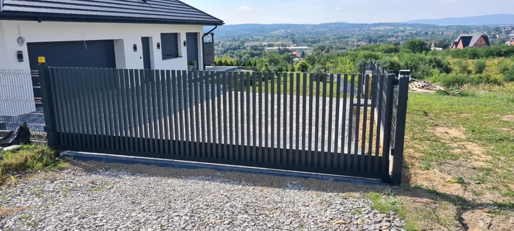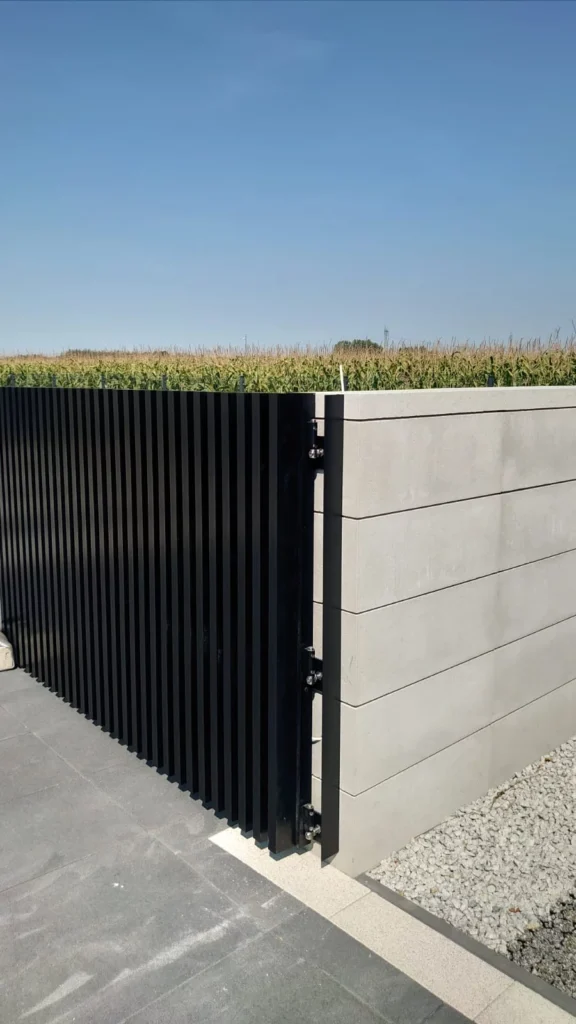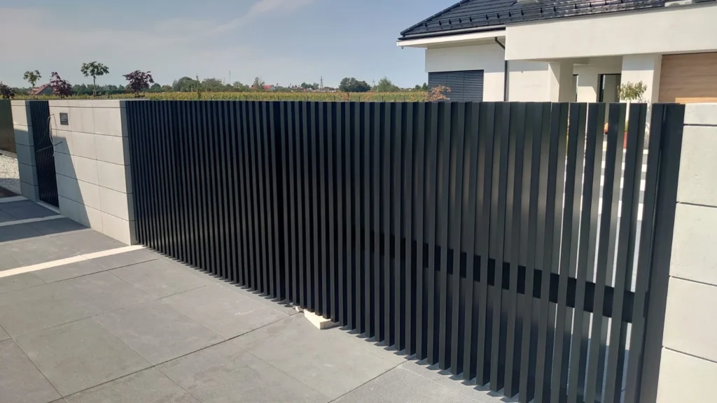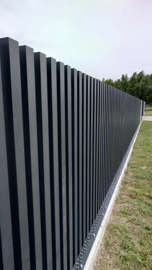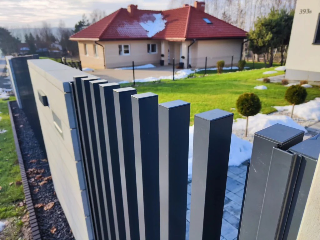Model Comb Standard to nowoczesny system ogrodzeń aluminiowych w układzie pionowym. Standardowe profile w tym modelu ogrodzenia aluminiowego wynoszą: 80 x 60, 60 x 40 oraz 50 x 50 Zakończone u góry aluminiowymi dekielkami.