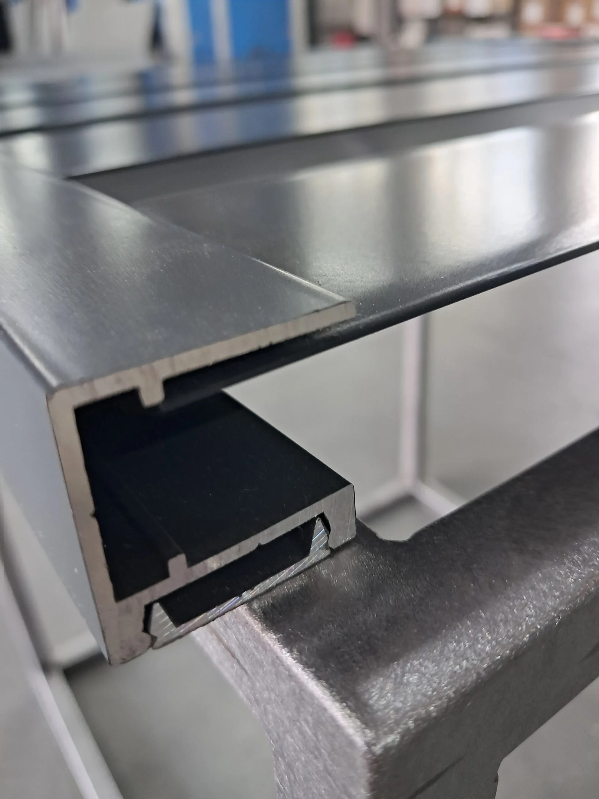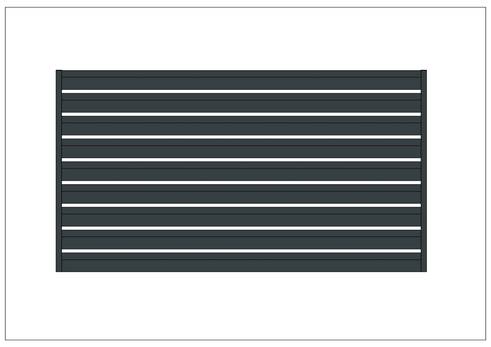 Model Geometrical, wykonany z profili aluminiowych montowanych poziomo, z panelami posiadającymi wymiary xyz o przekroju geometrycznym. Panele malowane na dowolny kolor z szerokiej gamy palety RAL. Model pełny, nowoczesny, zapewniający prywatność, komfort i ciszę.