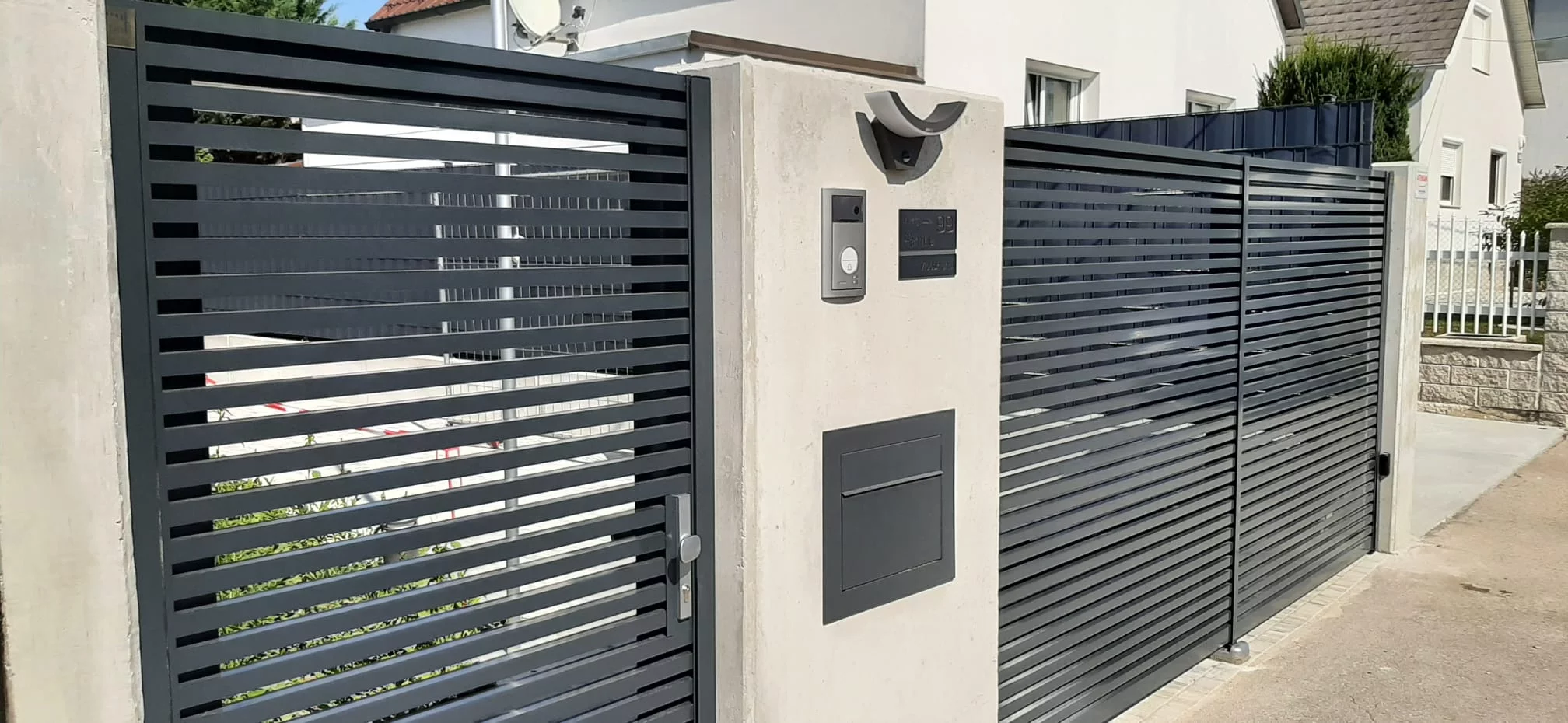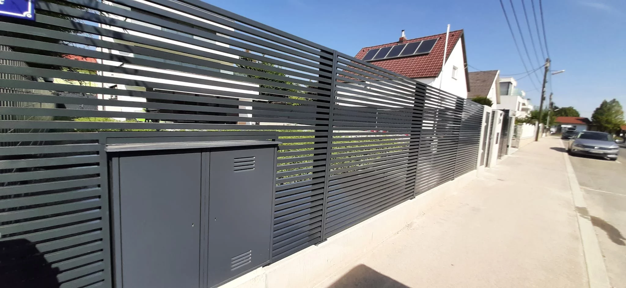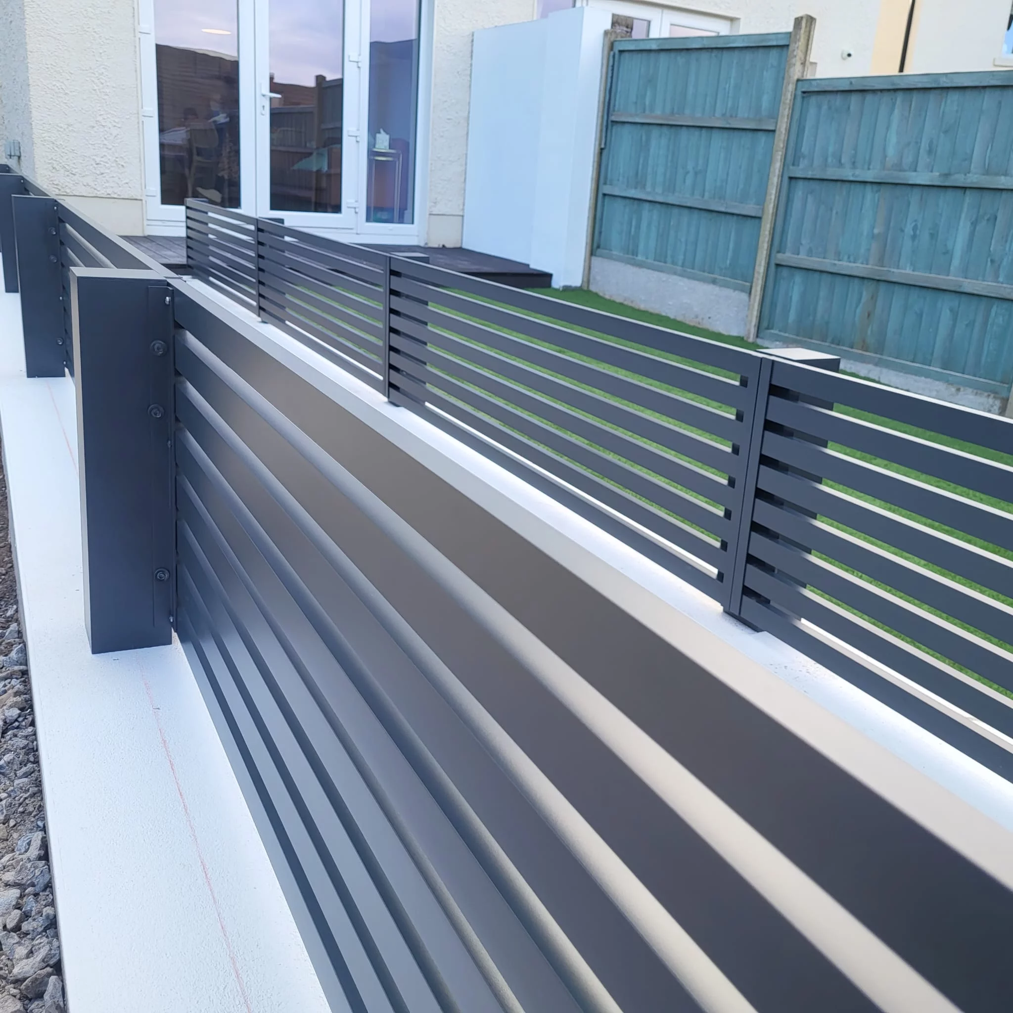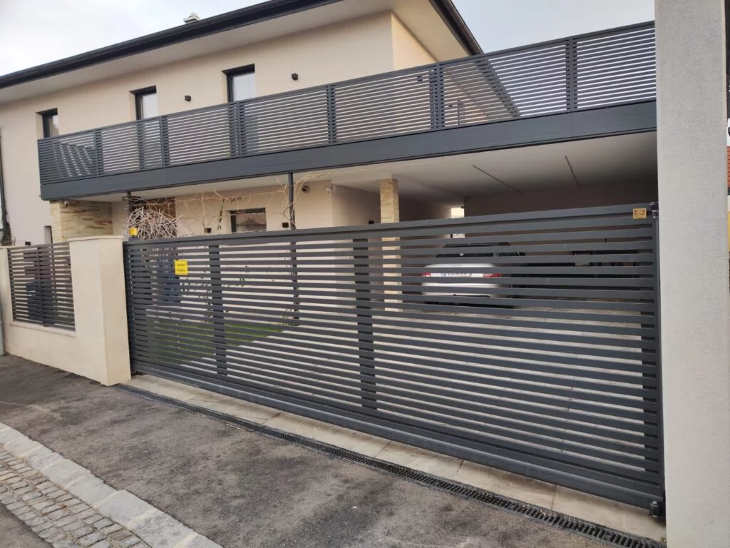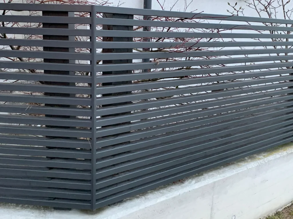 Model Line to nowoczesne ogrodzenie aluminiowe w układzie poziomym, które subtelnie podkreśla i akcentuje nowoczesną architekturę danej nieruchomości. Wykonane z profili aluminiowych 30 x 30 mm malowanych proszkowo w dowolnym kolorze z palety RAL. Profile aluminiowe 30 x 30 mm są montowane w układzie poziomym w standardowych odstępach ok. 20 mm, które na życzenie klienta można dowolnie modyfikować.