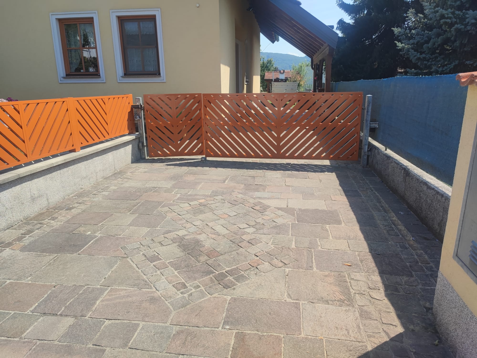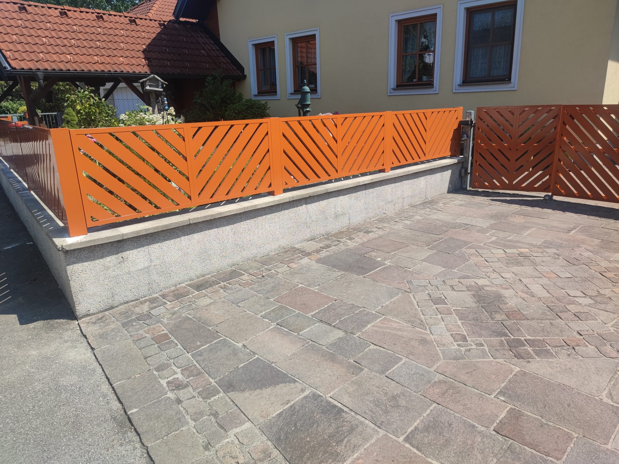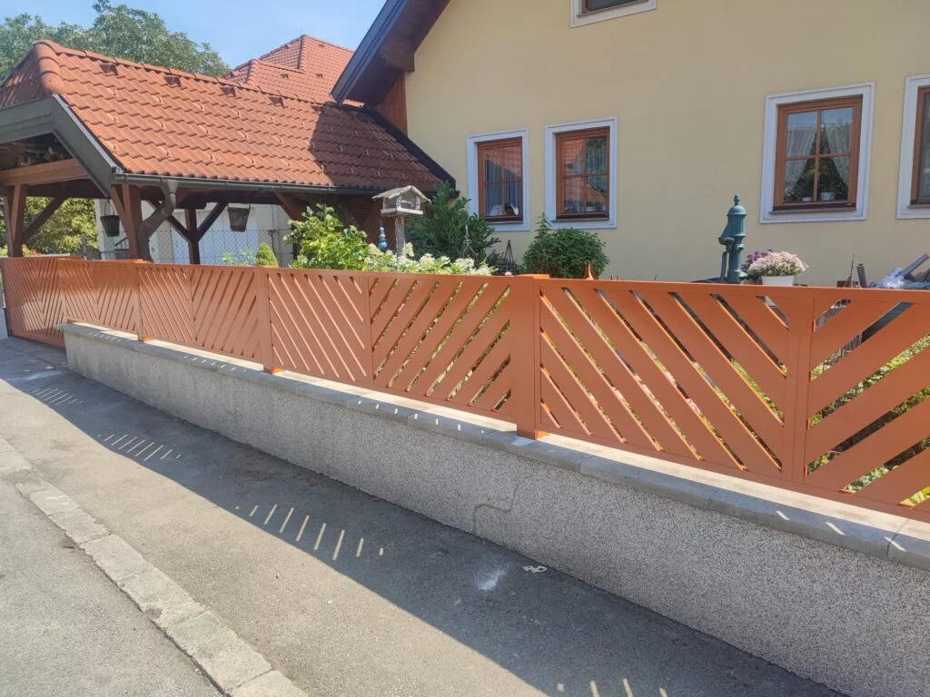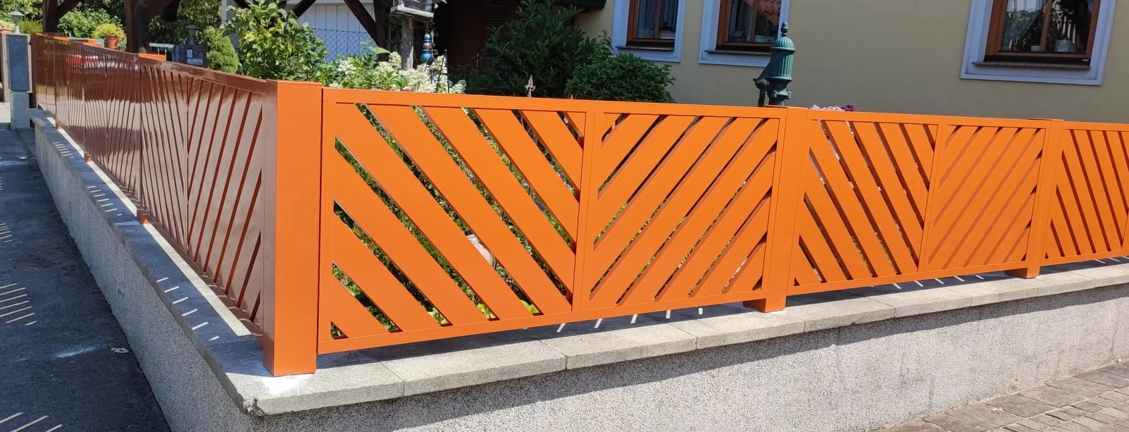 Model V – FORM wykonany z łat aluminiowych o wymiarach 80 x 20 oraz 100 x 20. Ogrodzenie aluminowe V – FORM jest dostępne w dwóch wariantach: z prześwitami 30 mm lub bez. W przypadku braku prześwitu, pomiędzy łaty umieszczone zostaną sztabki 15×15, dając tym samym efekt wgłębienia tworzącego rowki. Rama nośna Exlabesa 40 x 40