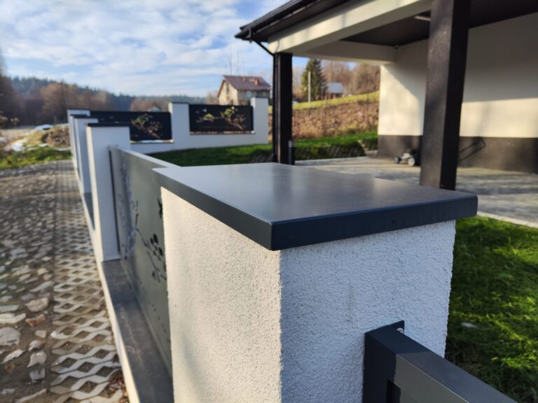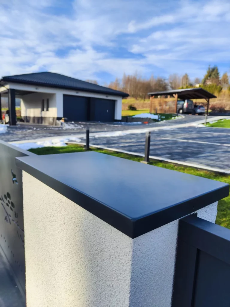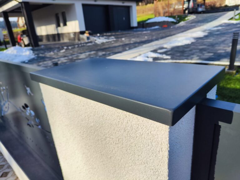 W trosce o zabezpieczenie innych elementów ogrodzenia, przedstawiamy daszki aluminiowe. Przeznaczone są do ochrony murków oraz pozostałych elementów ogrodzenia przed opadami atmosferycznymi i wilgocią. Wykonane z blachy aluminiowej produkowane na indywidualny wymiar w celu idealnego dopasowania do systemów ogrodzeniowych Euro Fences.